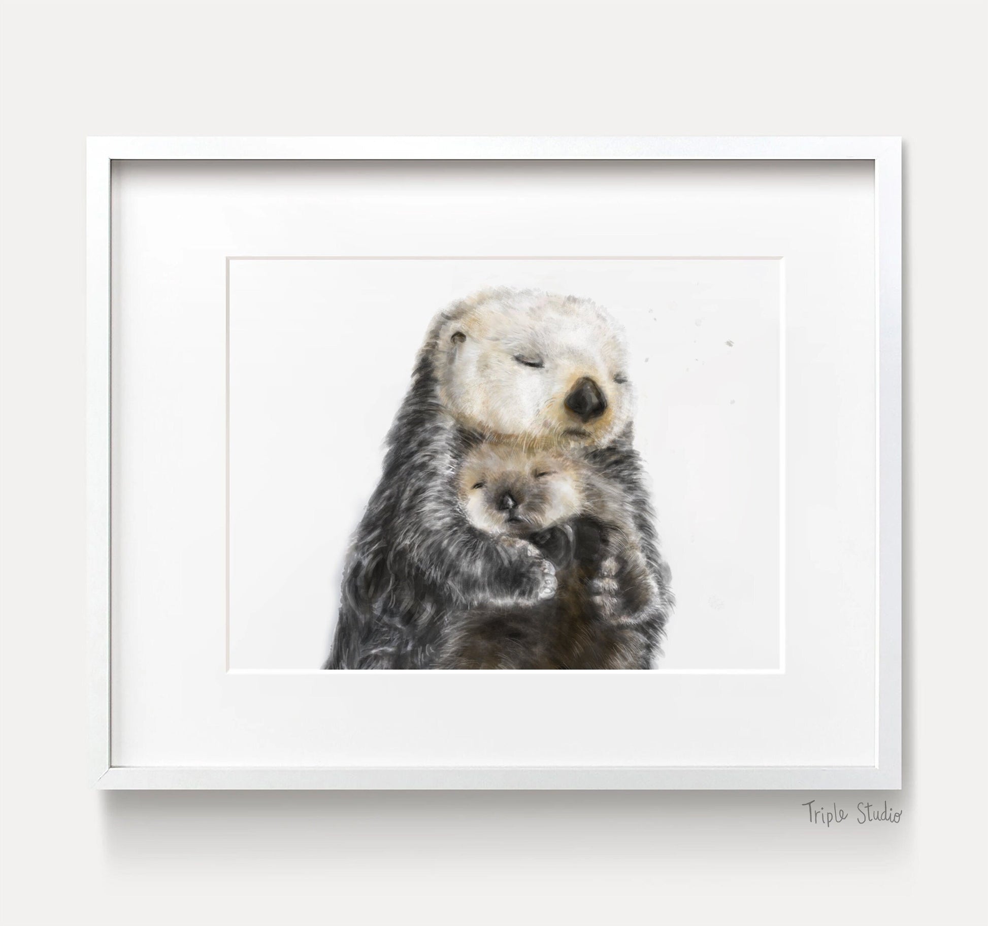Introducing our adorable Sea Otter Mom Hugging Baby Art Print – a heartwarming portrayal of maternal love and oceanic beauty. This sweet painting captures a tender moment between a sea otter mother and her adorable newborn in intricate watercolor details. The soothing hues and intricate textures bring the ocean's wonders to your space. Ideal for nursery decor or marine life enthusiasts, this high-quality art print adds a touch of aquatic serenity to any room. Embrace the bond of motherhood and the allure of the sea with this exquisite art piece.