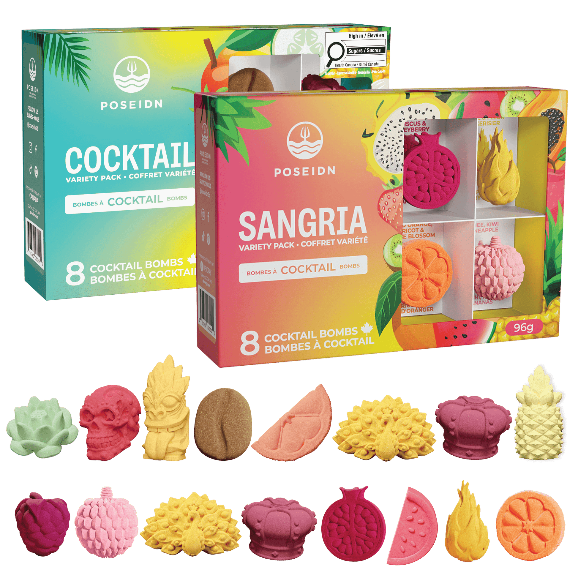 Two Variety Cocktail Bombs set to discover all our best Cocktail flavours! Each box contains 8 Bombs made with premium ingredients, overflowing in beautiful shapes and captivating summer flavours. The best kit to offer or enjoy yourself!