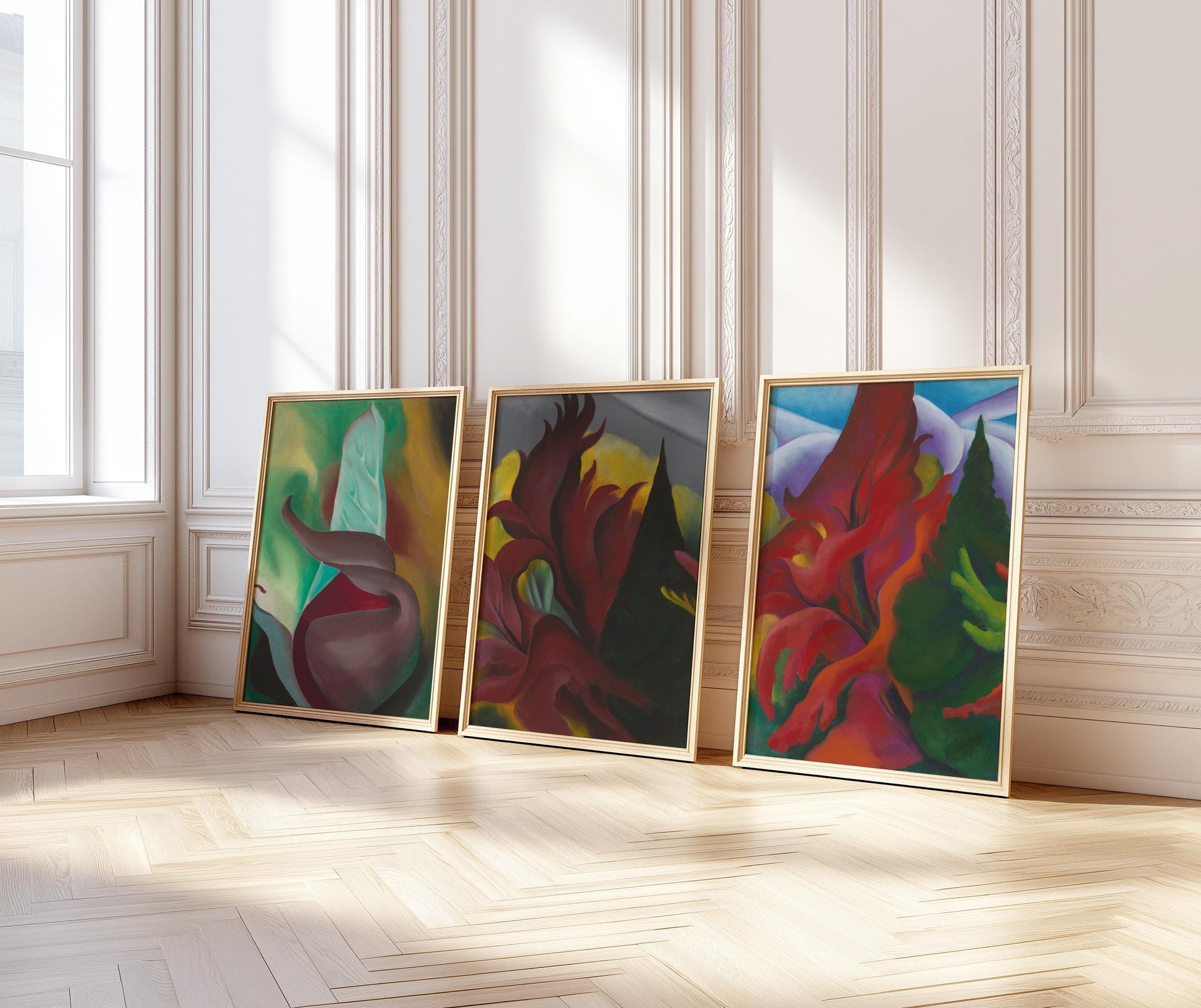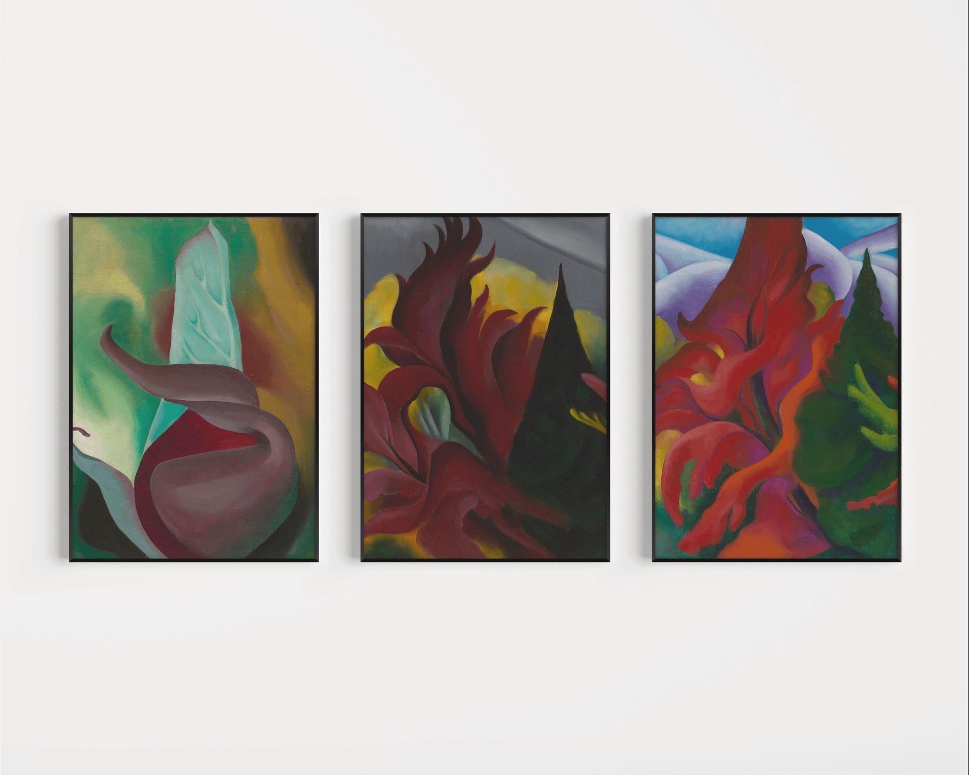 Georgia O'Keeffe STATEMENT TRIO - Skunk Cabbage, Red Maple and Trees in Autumn | An Incredible Vintage Set (Available Frame or unframed)