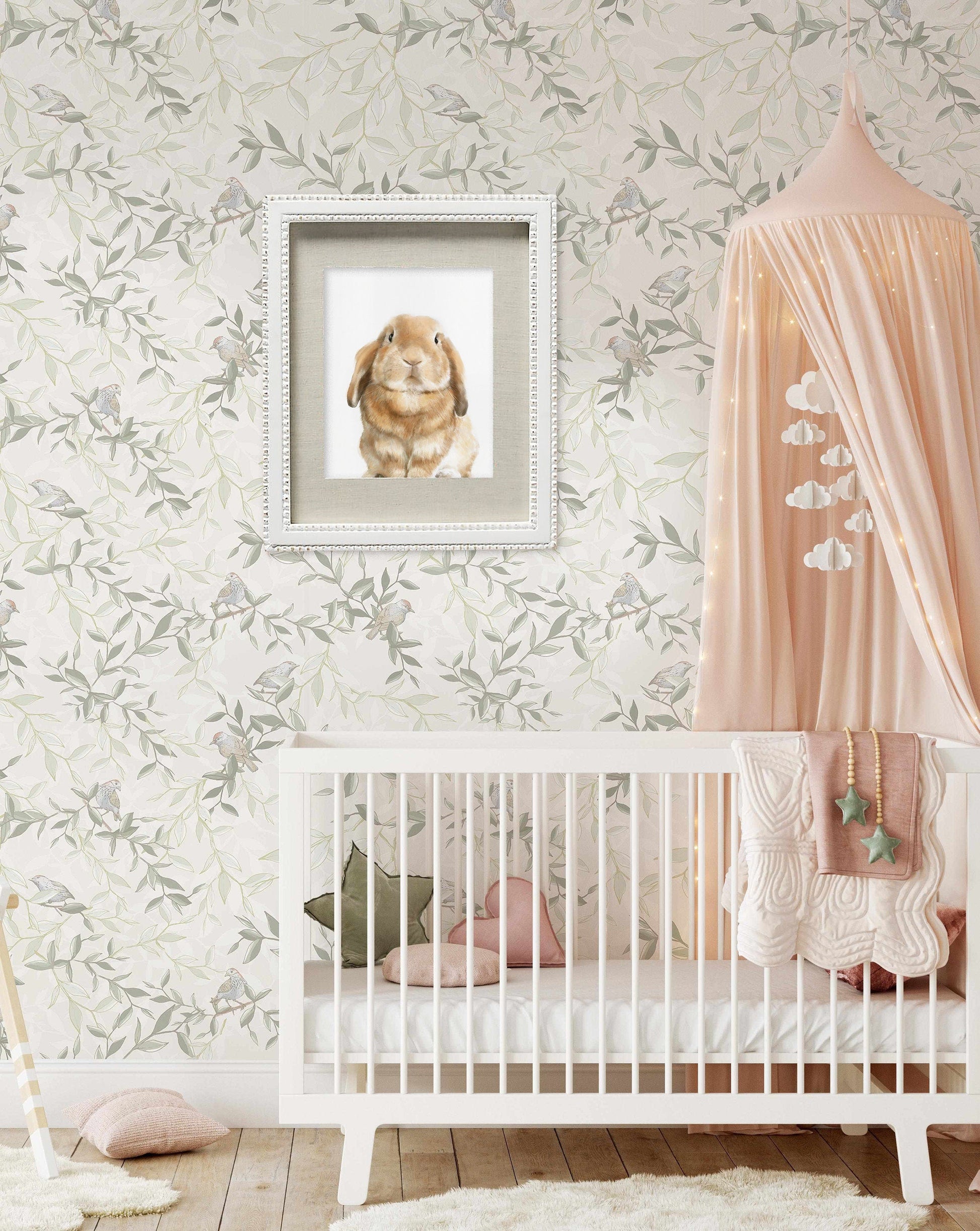 Spark a love for nature with this modern watercolor featuring a curious rabbit. Soft, calming colors and a touch of modern minimalism create a dreamy atmosphere for your little girl's room. Hand-painted with meticulous detail, it's a unique and charming addition to her space. Imagine the rabbit becoming a playful companion for your daughter, encouraging her to explore her imagination.