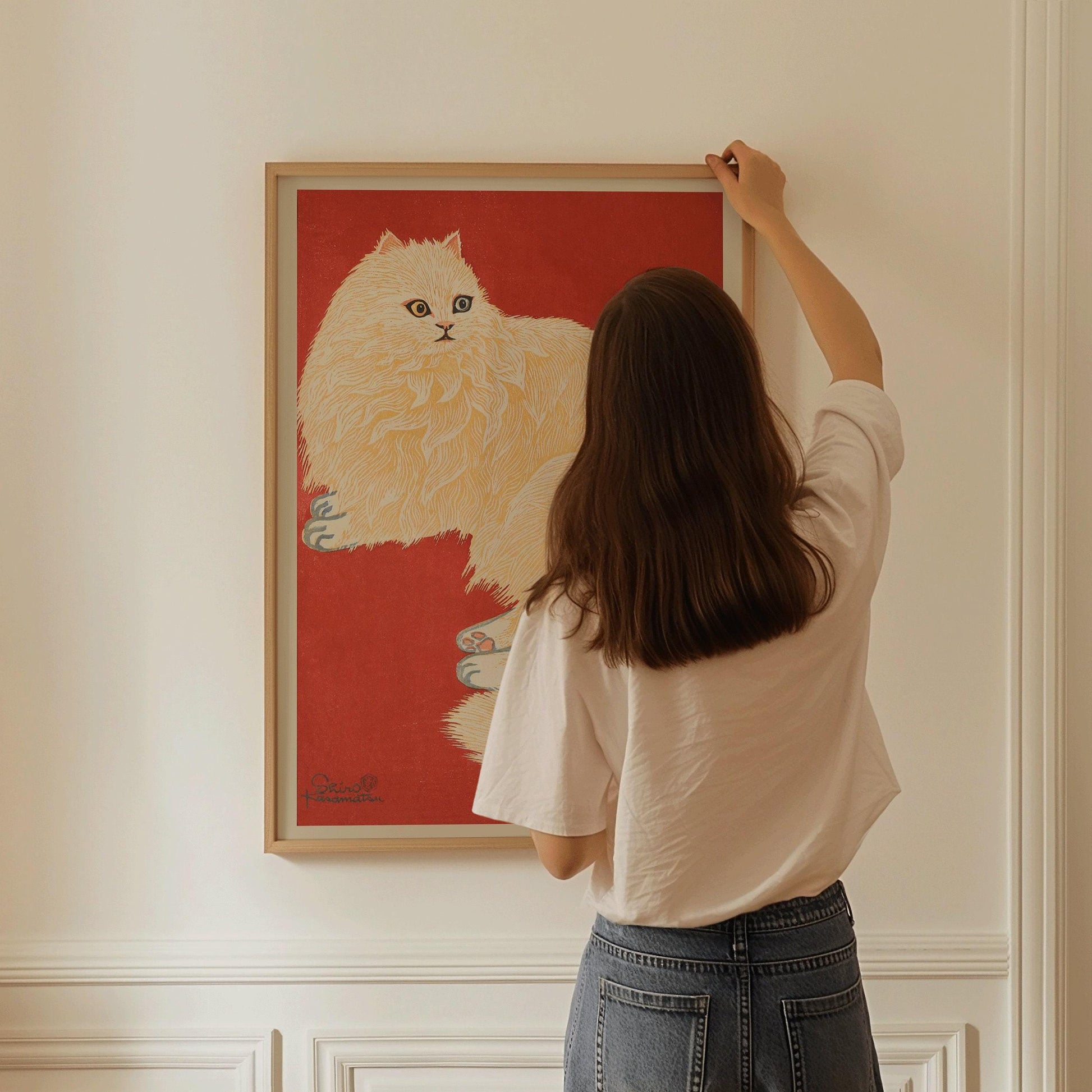 Shiro Kasamatsu - The White Cat | PREMIUM GICLÉE PRINT | Vintage Japanese Woodblock Art in Red and White (available handframed or unframed)