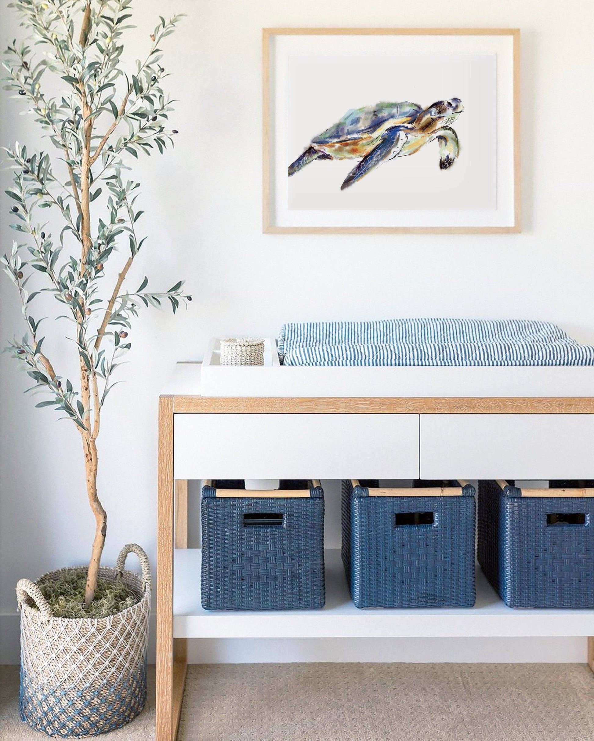 Breathe in the ocean breeze with this Vibrant Sea Turtle Watercolor Painting, a splash of color for your modern coastal decor!