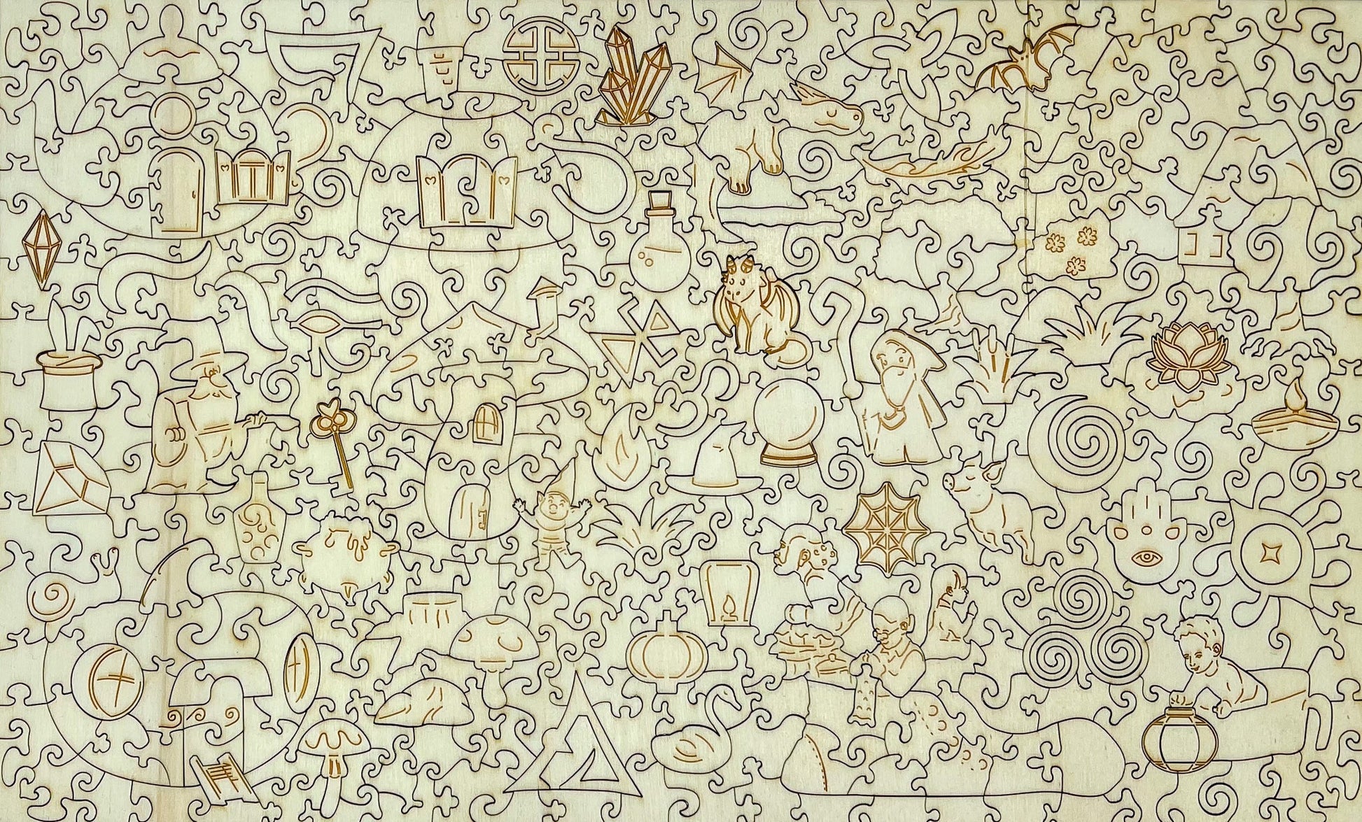 Crafted from premium 1/4″ A-grade poplar plywood and laser-cut with precision, this 450-piece double-sided puzzle blends fine craftsmanship with timeless storytelling. Designed to delight collectors, families, and dreamers alike.